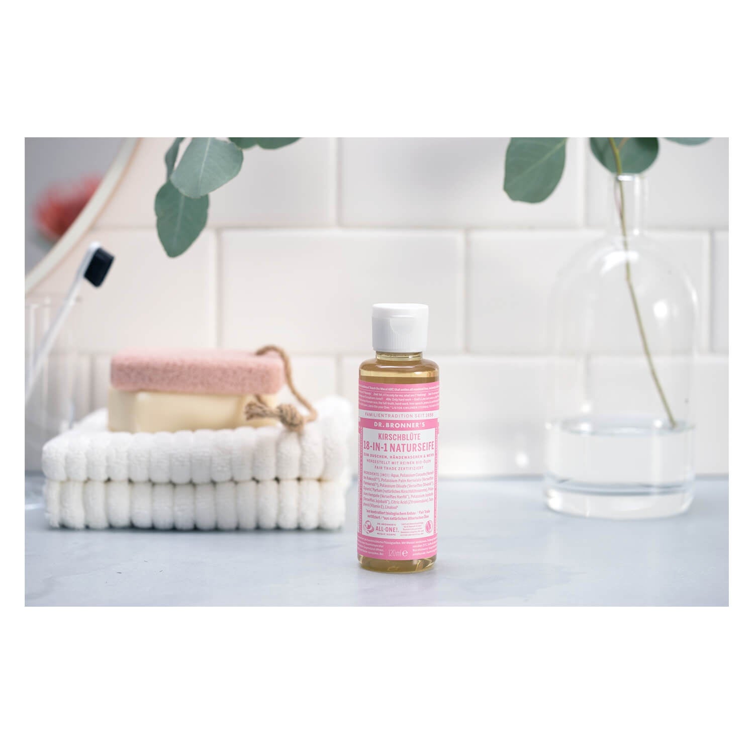 Wenn sich Tokio im Frühling in ein seidig-rosa Kleid duftender Kirschblüten hüllt, dann wird zelebriert. Die Freude am Frühlingsanfang, die Vergänglichkeit und der warme, feine Duft der zarten Kirschblüten lässt die Menschen in Parks verweilen und den Frühlingsanfang feiern. Wir fangen diese wohligen Frühlingsgefühle für dich in unserer reinen Naturseife ein. Dr. Bronner’s steht für faire Biokosmetik und baut auf einer konsequent nachhaltigen Wertschöpfungskette auf. Alle Inhaltsstoffe sind aus kontrolliert biologischem Anbau und fair trade zertifiziert. Die Produkte sind biologisch abbaubar und können in der Natur verwendet werden. Dr. Bronner’s verzichtet bei seinen reinen Naturseifen vollständig auf Zusatzstoffe wie Schaumbildner und Verdickungsmittel. Sie werden aus biologischen Ölen hergestellt und mit reinen, ätherischen Ölen veredelt. Dadurch sind sie sehr ergiebig, vielseitig anwendbar und bereits wenige Tropfen genügen für einen samtweichen Schaum.