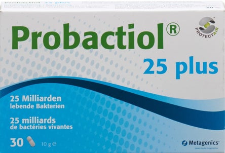 Probactiol® plus ist ein probiotisches Nahrungsergänzungsmittel. In einer Kapsel sind 25 Milliarden lebende Bakterien enthalten. Durch die hohe Dosierung lässt sich der Darm schneller besiedeln und dadurch das Gleichgewicht rascher wieder herstellen. Und das mit nur einer Kapsel pro Tag! 12,5 Milliarden Lactobacillus acidophilus NCFM und 12,5 Milliarden Bifidobacterium lactis Bi-07. Für Erwachsene (ab 12 Jahren) Geeignet für Personen mit Laktoseintoleranz, Glutenunverträglichkeit (Zöliakie) und Vegetarier. Probactiol plus ist frei von Milcheiweis, Soja, Nüssen oder Hefe.