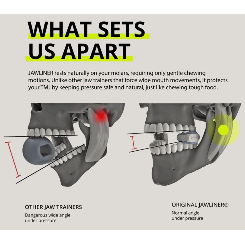 JAWLINER® Advanced ist das Nr. 1 Tool für dein fortgeschrittenes Kiefer- und Gesichtstraining. Mit dem von Kieferorthopäden entwickelten JAWLINER-Kau-Training für Fortgeschrittene, beanspruchst du deine Kiefermuskulatur auf besonders schonende aber gleichzeitig sehr effiziente Weise. Dies verschafft dir im Nu eine definierte und muskulöse Jawline und lässt dein Äußeres attraktiver, selbstsicherer und selbstbewusster erscheinen.