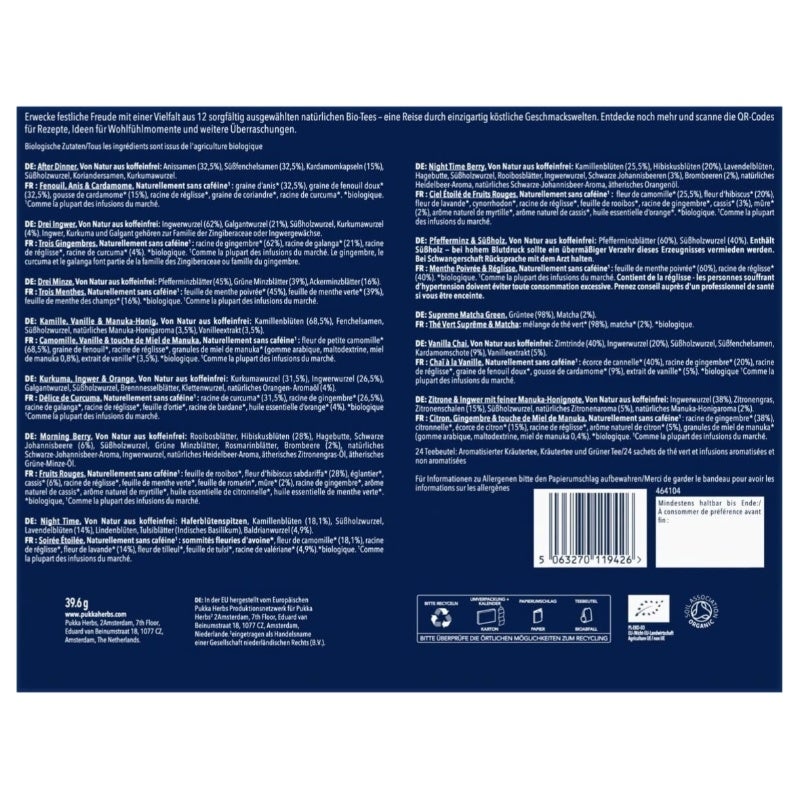 - Erlebe eine magische Reise mit diesen 24 verschiedenen Teevariationen ausgewählter Pukka Bio-Kräuter-, Früchte- und Grüntees