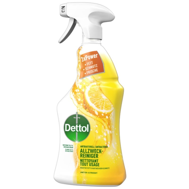 Dettol antibakterieller Allzweckreiniger Limette & Citrus entfernt 99.9% der Bakterien und bekämpft Viren wie Influenza Typ A H1N1 und COVID-19. Mit seiner 3x Power beseitigt er Fett und hartnäckigen Schmutz und hinterlässt einen angenehmen Duft in der Küche. Seit 1933 steht Dettol für hygienische Sauberkeit und den Schutz Ihrer Familie, indem es die Keimausbreitung auf Händen und Oberflächen reduziert und so zu einem gesunden Leben beiträgt.