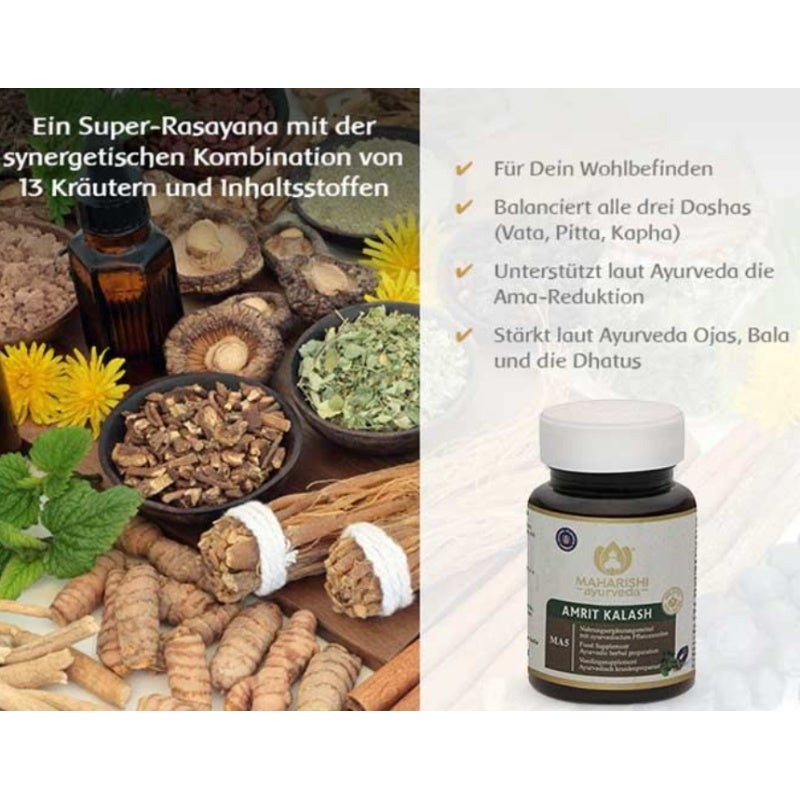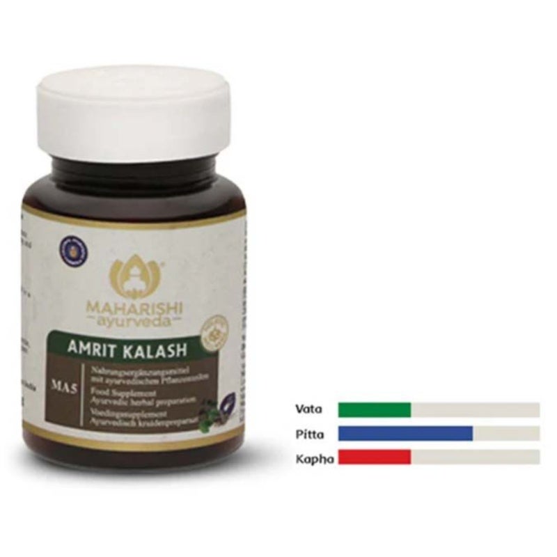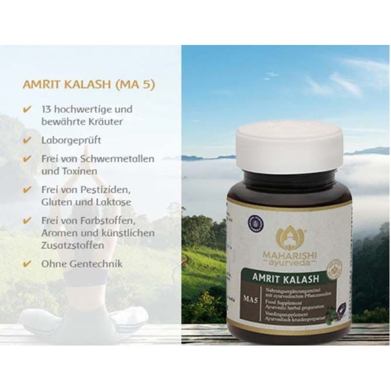 Erleben Sie das Beste der jahrtausendealten ayurvedischen Heilkunde mit dem Amrit Kalash MA 5 von Maharishi Ayurveda. Diese aussergewöhnliche Kräuterformel ist eine wertvolle Mischung aus 12 bewährten ayurvedischen Kräutern, die in den alten Ayurveda-Schriften für ganzheitlich unterstützend beschrieben werden.