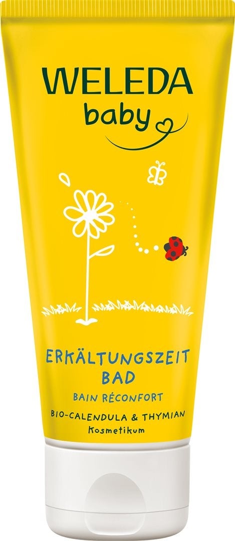 Das Weleda Baby Calendula Erkältungszeit Bad spendet wohltuende Wärme in der kalten Jahreszeit und nutzt die Kraft ätherischer Öle. Die sanfte Komposition enthält Sonnenblumen-, Mandel- und Sesamöl aus kontrolliert biologischem Anbau sowie einen milden Auszug aus Ringelblumenblüten, die für ihre pflegenden und beruhigenden Eigenschaften bekannt sind.