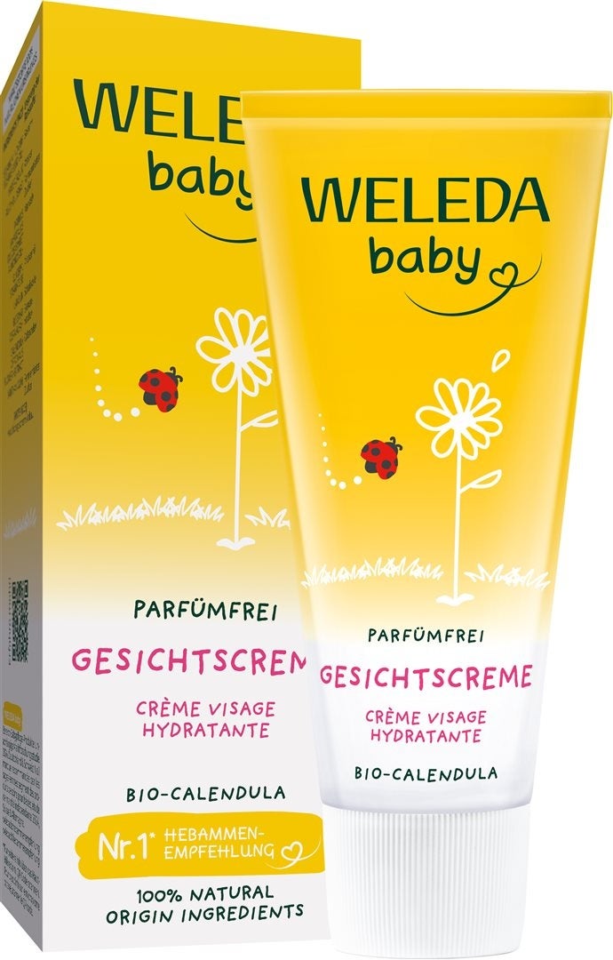 Die Weleda Calendula-Gesichtscreme ist eine milde, speziell für die zarte Gesichtshaut entwickelte Pflege, die wertvolles Mandelöl enthält und besonders viel Feuchtigkeit spendet. Reines Bienenwachs schützt die Haut wirksam vor dem Austrocknen, während ein Heilpflanzenauszug aus kontrolliert biologisch angebauter Calendula beruhigend wirkt und Hautirritationen mildern kann. Die cremige Textur lässt sich gleichmässig verteilen, zieht angenehm ein und hinterlässt ein gepflegtes, geschmeidiges Hautgefühl.