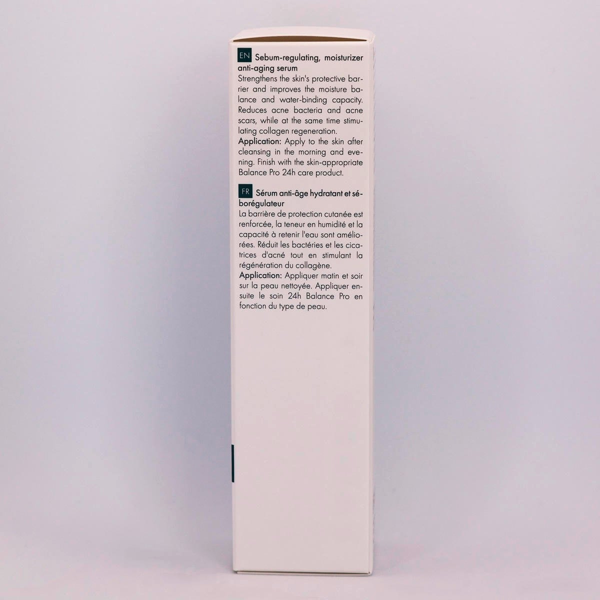 Anwendung: Morgens und abends nach der Reinigung eine kleine Menge (1 Pumpstoß) auf die Haut auftragen und in kreisenden Bewegungen einmassieren. Anschließend die hauttypgerechte Balance Pro 24H-Pflege auftragen.