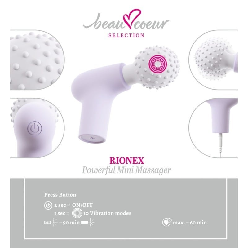 Stylisch, smart, stark! Der kompakte RIONEX Mini Massager von beau cœur sieht aus wie eine kleine schicke Massagepistole – und lässt sich auch genauso leicht und bequem handhaben. In dem soften Noppen-Massagekopf aus Silikon bündeln sich extrastarke Vibrationen, um punktgenau und tiefgehend zu stimulieren. So können Klitoris & Co sowie äußere Zonen am Körper ganz gezielt verwöhnt werden. 10 Vibrationsmodi bieten dabei vielseitiges Vergnügen und sind ganz easy per Knopfdruck direkt am Toy steuerbar. Perfekt für eine entspannte Me-Time und das prickelnde Warm-up zu zweit!