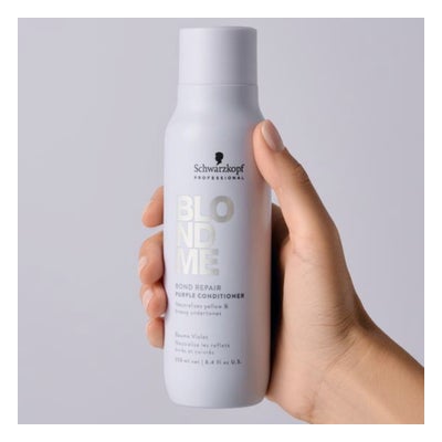 Anwendung des Schwarzkopf Professional BLONDME Bond Repair Lila Conditioners :