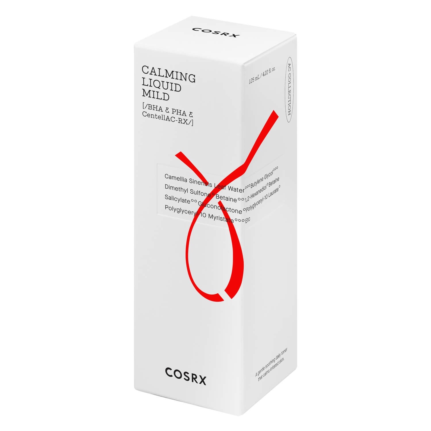 Das Calming Liquid Mild aus der AC Collection von COSRX ist ein veganes Gesichtswasser, das speziell für zu Akne neigende Haut entwickelt wurde. Es wird auch zur Behandlung von vergrösserten Poren und Mitessern empfohlen. Dieses tägliche Gesichtswasser ist mit Grünem Tee und einer Mischung aus 3 Centella Asiatica-Extrakten formuliert - eine Kombination natürlicher Inhaltsstoffe, die gereizte Haut beruhigen und reparieren. Ausserdem enthält es PHA- und BHA-Säuren, die die Haut sanft peelen und überschüssigen Talg entfernen. Teebaumblattöl, Panthenol (Vitamin B-5) und Allantoin wirken entzündungshemmend.
