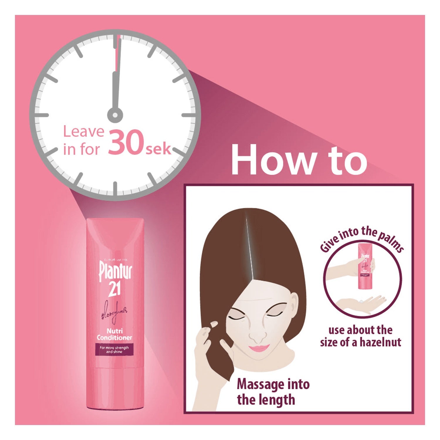 Je nach Haarlänge eine 1-2 haselnussgrosse Portion nach der Haarwäsche im nassen Haar verteilen. 30 Sekunden einwirken lassen und dann gründlich ausspülen. Für natürlich langes Haar ohne Extensions. Tipp: Für die Haarwäsche empfehlen wir dir das Plantur 21 #langehaare Shampoo zu verwenden. So gibst du deinen Haarwurzeln den zusätzlichen Coffein-Kick und verbessert so dein Haarwachstum.