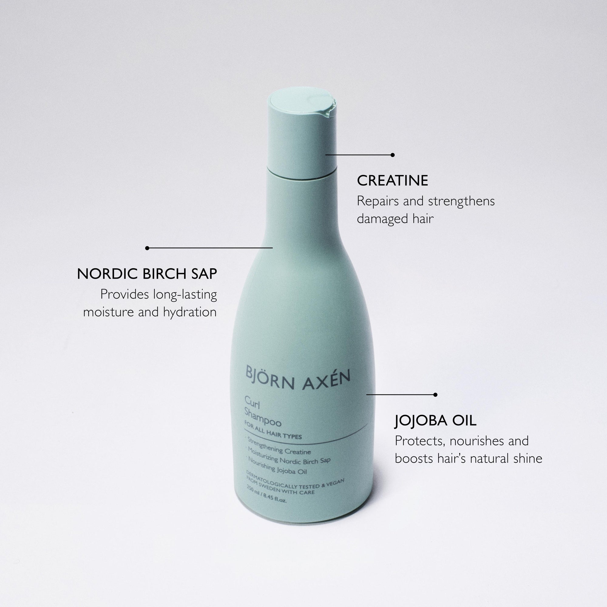 Intensiv feuchtigkeitsspendendes Shampoo für definierte, glänzende Locken. Dieses intensiv feuchtigkeitsspendende Shampoo mit Kreatin, nordischem Birkensaft und Jojobaöl repariert, pflegt und hydratisiert das Haar – für geschmeidige, glänzende und definierte Locken ganz ohne Frizz.