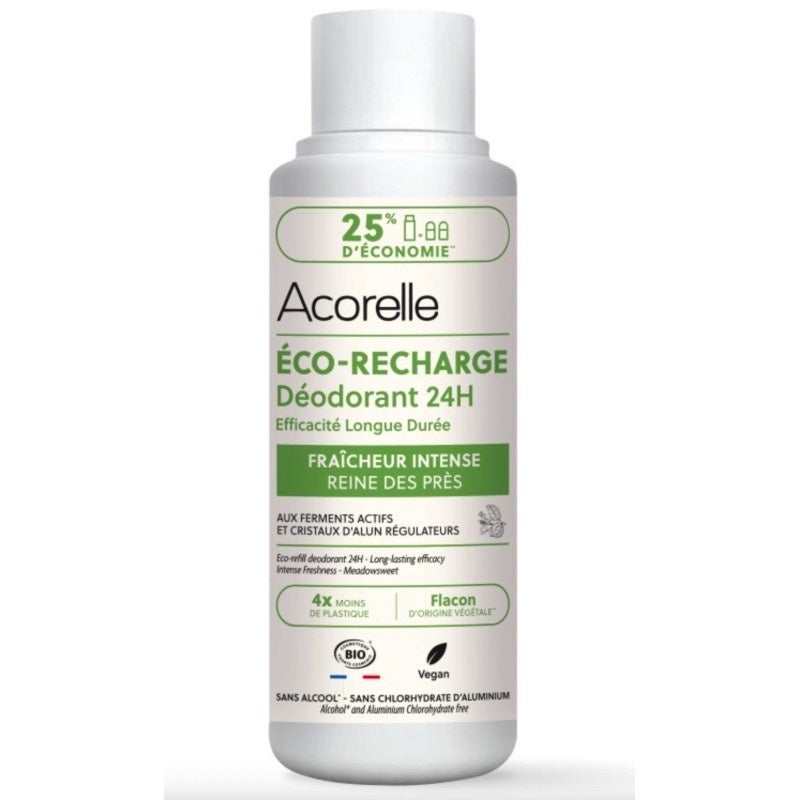 Der Acorelle Deo 24h Roll-on Intensive Frische bietet zuverlässigen Schutz vor Geruchsbildung – ganz ohne Aluminiumhydroxichlorid. Die vegane Formel nutzt die natürliche Kraft von Alaunkristallen, die die Transpiration regulieren, ohne die Haut zu blockieren. Gleichzeitig hemmen sie das Wachstum geruchsbildender Bakterien und sorgen so für ein langanhaltendes Frischegefühl. Das enthaltene Mädesüss-Blütenwasser wirkt klärend und unterstützt die Haut dabei, im Gleichgewicht zu bleiben. Die Formel spendet Feuchtigkeit und hinterlässt ein angenehm gepflegtes Hautgefühl – ideal für jeden Hauttyp. Der frische, natürliche Duft begleitet dich sanft durch den Tag und sorgt für zusätzliche Reinheit und Wohlbefinden. Dank der praktischen 100-ml-Refillgrösse ist das Nachfüllen besonders nachhaltig und ressourcenschonend.