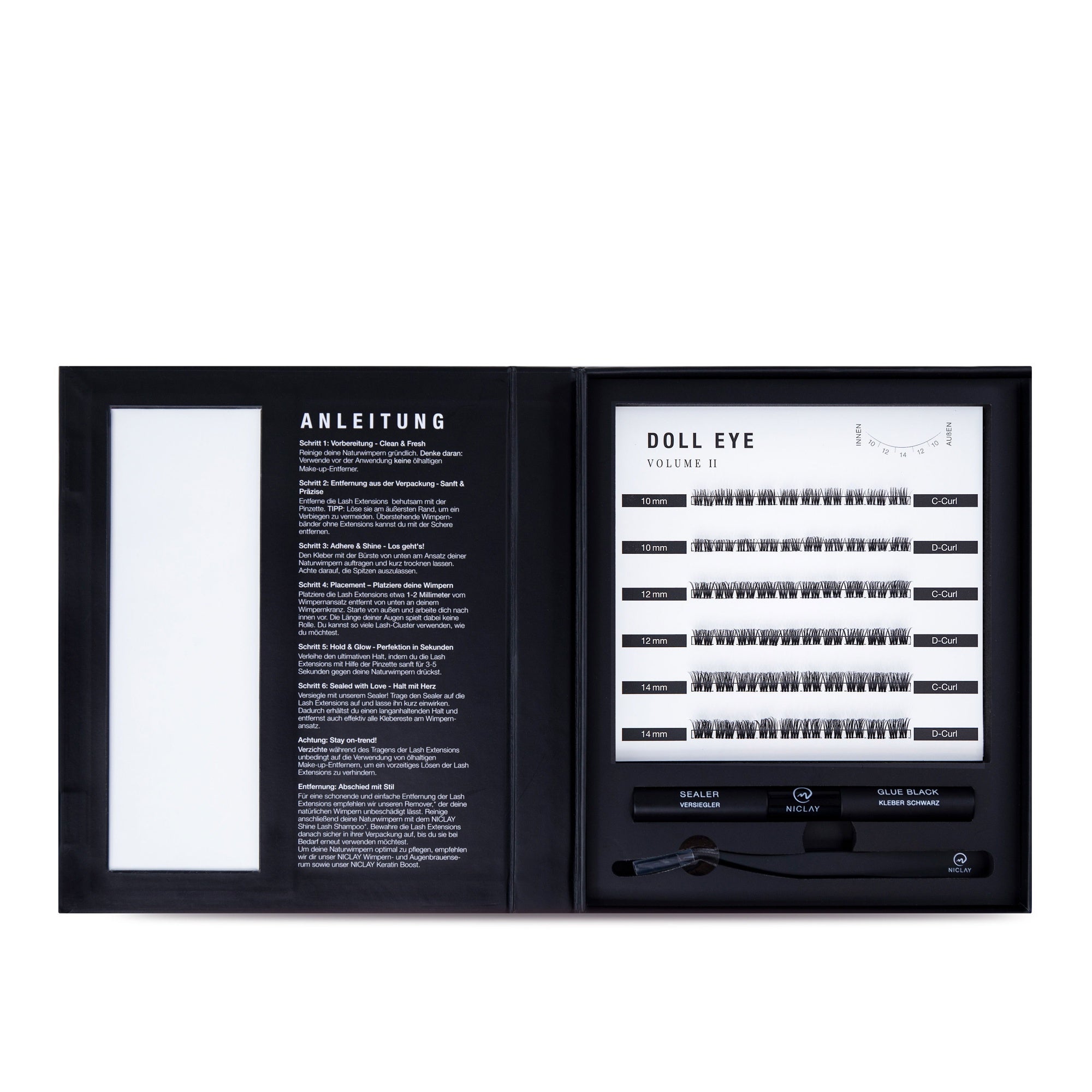 Inklusive Zubehör: hochwertiger Kleber, Versiegelung und praktische Lash Pinzette.100% vegan. Die Anwendung ist spielend einfach – klebe die Wimpernextensions an deine natürlichen Wimpern, und voilà, deine Augen strahlen im neuen Glanz. Warum unser DIY Lash Starterkit? Kostengünstig und zeitsparend, perfekt für langanhaltenden Glamour ohne viel Aufwand. Entdecke jetzt die Welt der DIY Glamour Lash Extensions und bestelle dein Kit für professionelle Wimpernverlängerungen bei dir zuhause! Mit 60 Clustern kannst du 6 verschiedene Wimpernstyles erstellen, ohne sie erneut zu verwenden.
