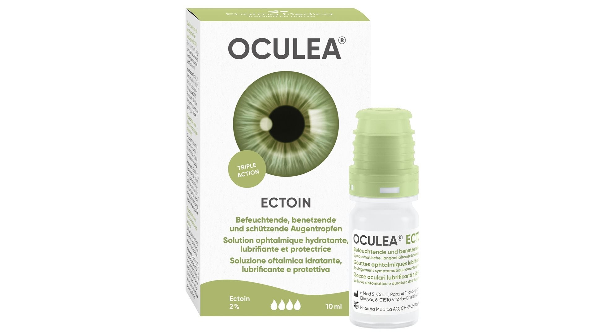 OCULEA ECTOIN Augentropfen befeuchten, beruhigen und schützen trockene, gereizte und juckende Augen und lindern zuverlässig allergische Symptome, z. B. bei Pollenallergie. Die innovative Wirkstoffkombination sorgt für eine langanhaltende Linderung mit bis zu 12 Stunden Wirkung. Ectoin schützt und stabilisiert die Augenoberfläche und hilft, allergische und entzündliche Reaktionen zu reduzieren. Hyaluronsäure spendet intensive Feuchtigkeit, pflegt die Hornhaut und kann tränende Augen vermindern. Carboxymethylcellulose bindet zusätzlich Feuchtigkeit und haftet an den Epithelzellen der Hornhaut – für eine besonders dauerhafte Befeuchtung. Dank der Depot-Wirkung bildet die Kombination der Wirkstoffe eine feine Netzstruktur auf dem Auge, die Ectoin einschliesst und dessen sukzessive Freisetzung ermöglicht. So bleibt der Schutz länger auf der Augenoberfläche erhalten.