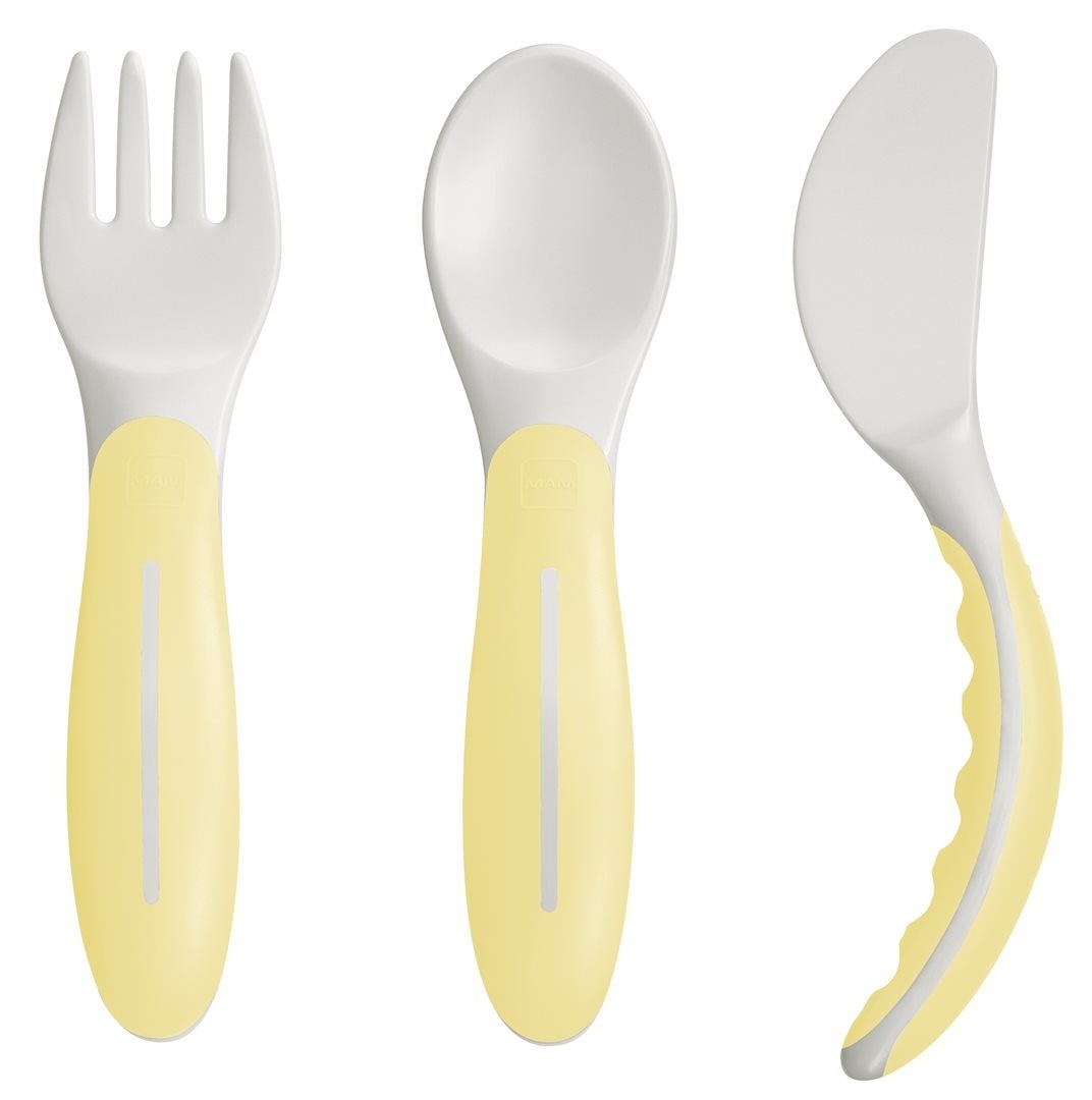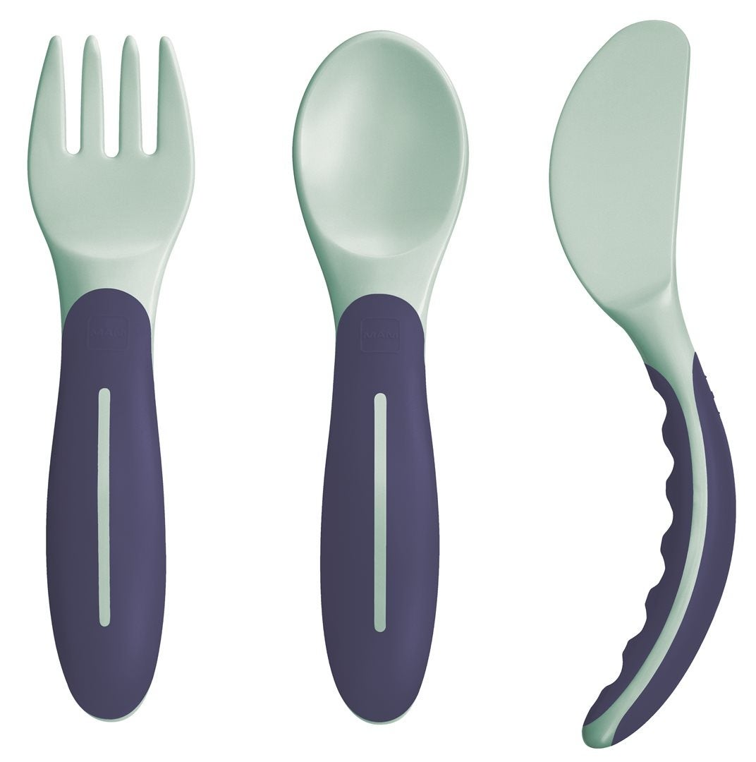 MAM Esslernbesteck eignet sich hervorragend für den ersten Kontakt mti richtigem Besteck. Das Kinderbesteck aus BPA-freiem Material bietet eine tolle Möglichkeit, dass Kinder früh lernen mit Messer und Gabel zu essen.