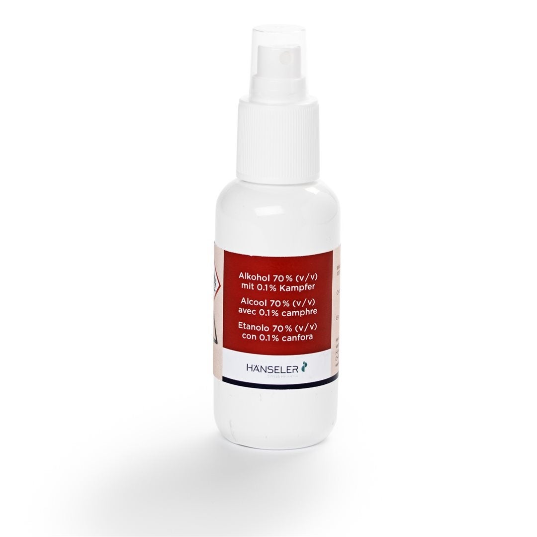 Das Top Ten Ethanolum 70 % cum Campher 0.1 % Spray von Hänseler ist eine desinfizierende Lösung zur zuverlässigen Hygiene im medizinischen und alltäglichen Bereich. Die Formulierung enthält 70 % Ethanol sowie 0,1 % Kampfer (Campher). Ethanol ist ein bewährtes Antiseptikum und bekannt für seine bakteriziden, viruziden und fungiziden Eigenschaften. Der Zusatz von Kampfer verleiht dem Spray einen charakteristischen Duft und sorgt für ein angenehmes Frischegefühl bei der Anwendung. Das Produkt wird gemäss Literatur insbesondere zur Desinfektion der Haut vor Injektionen sowie zur hygienischen Händedesinfektion empfohlen. Es ist nicht geeignet zur Desinfektion grossflächiger offener Wunden.