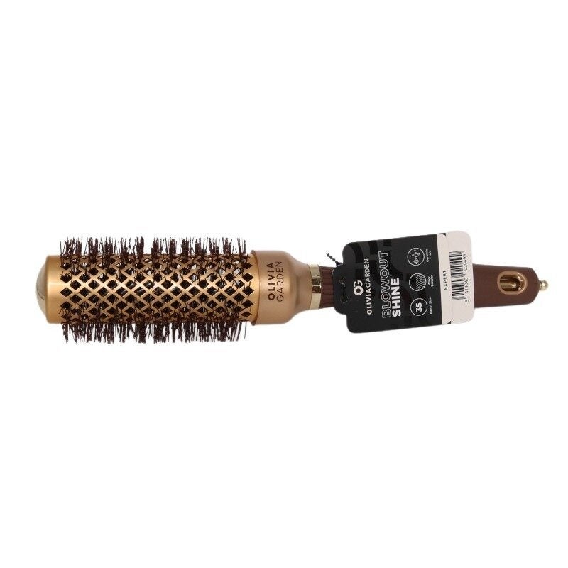 Die Olivia Garden Expert Blowout Shine Gewellte Borsten ist um glattes, gesundes Haar zu stylen. Diese Turmalin-Bürste schützt das Haar vor dem Austrocknen, reduziert statische Aufladung und verleiht ultra-glänzendes, strahlendes Haar. Der keramikbeschichteter Bürstenkopf verteilt die Wärme gleichmäßig und die gewellten Borsten nehmen das Haar besser auf. Die Ionisierte Nylonborsten mit antistatischem Effekt sorgen für bessere Frisierbarkeit. Die gewellten Nylonborsten bieten eine sehr gute Griffigkeit, mit der sich selbst feines Haar problemlos stylen lässt. Der enthaltene Keramikkörper verteilt die Föhnhitze optimal und gleichmässig über den gesamten Bürstenkopf, sodass jede Haarpartie mit einer gleichmäßigen Temperatur getrocknet wird. Dank dem griffigen Design kann jeder Look kreieren werden.