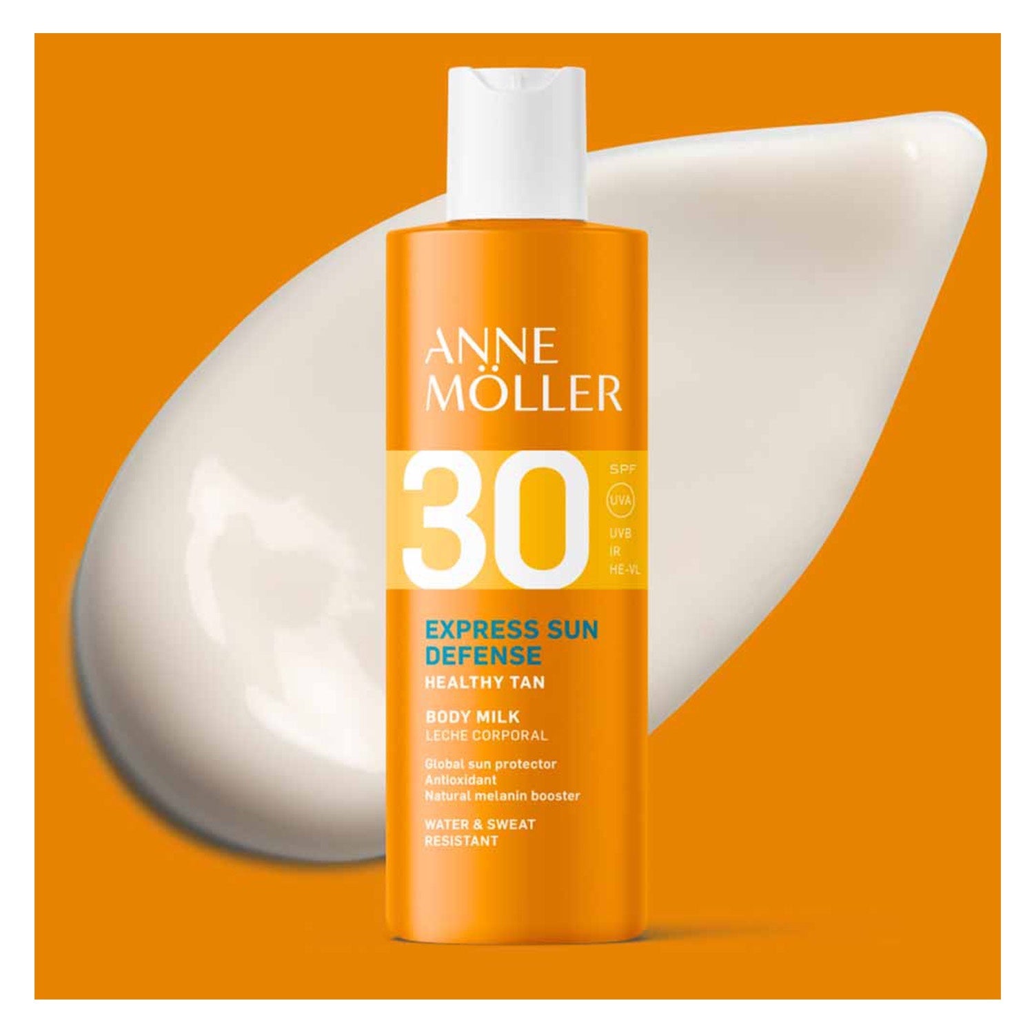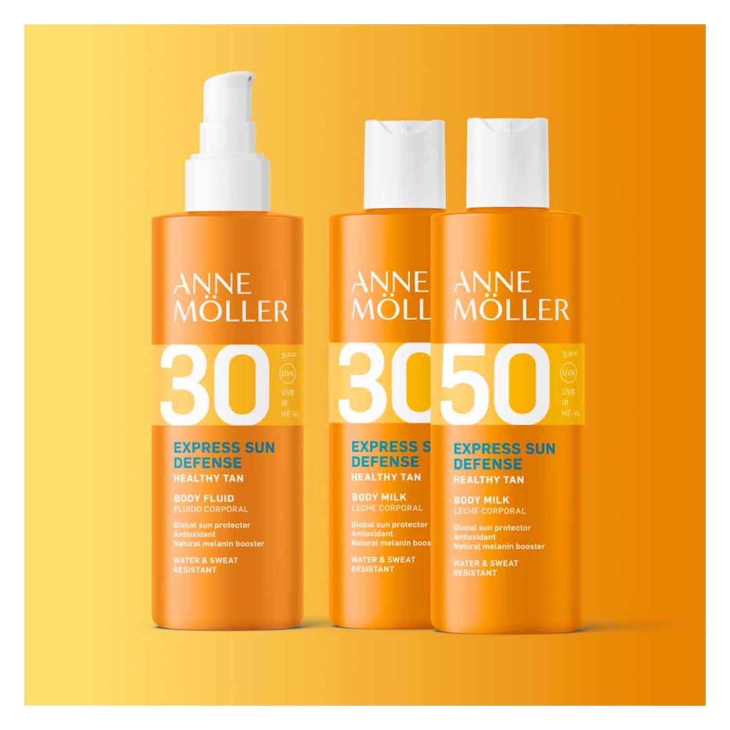 Die Express Sun Defense Linie bietet einen dreifachen Sonnenschutz, der einen sicheren Schutz und einen gesunden, gebräunten Hautton garantiert. Wie das geht? Sie bietet umfassenden Schutz gegen alle Arten von Sonneneinstrahlung (UVA, UVB, IR und HE-VL), eine starke antioxidative Wirkung (mit der exklusiven Global Defense TechnologyTM) und eine Stärkung der Abwehrkräfte der Haut dank des Natural Melanin Booster, der die Bräunung sicher um +60%* beschleunigt.