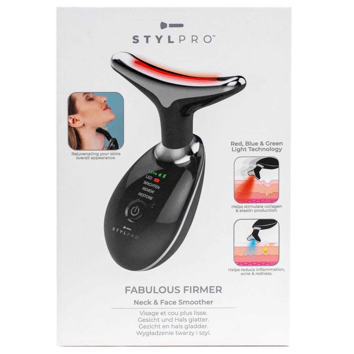 STYLPRO Fabulous Firmer ist ein tragbares LED-Hautpflegegerät, das hilft, die Haut von Gesicht und Hals zu verjüngen. Müde, teure Anti-Aging-Cremes zu kaufen? Optimieren Sie Ihre Hautpflegeroutine mit dem STYLPRO Fabulous Firmer, der innovative Technologien moderner Spa-Behandlungen direkt zu Ihnen nach Hause bringt. Das Gerät hilft, das Erscheinungsbild von Falten, Altersflecken und ungleichmäßig wirkender Haut zu reduzieren. Der STYLPRO™ Neck & Face Smoother kombiniert Wärme, Vibrationen und LED-Lichttechnologie, um die Haut straffer und elastischer erscheinen zu lassen, die Poren sichtbar zu verkleinern und das Hautbild zu klären.
