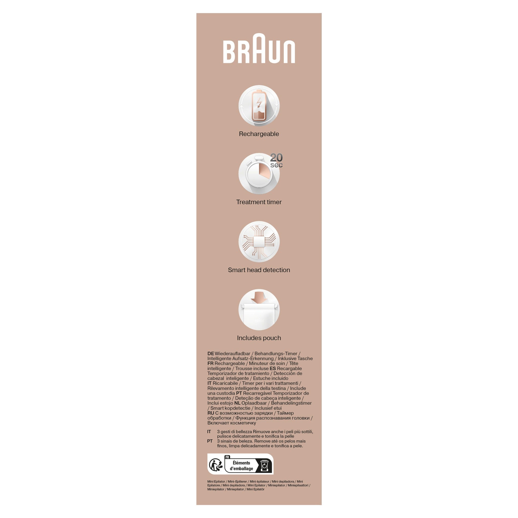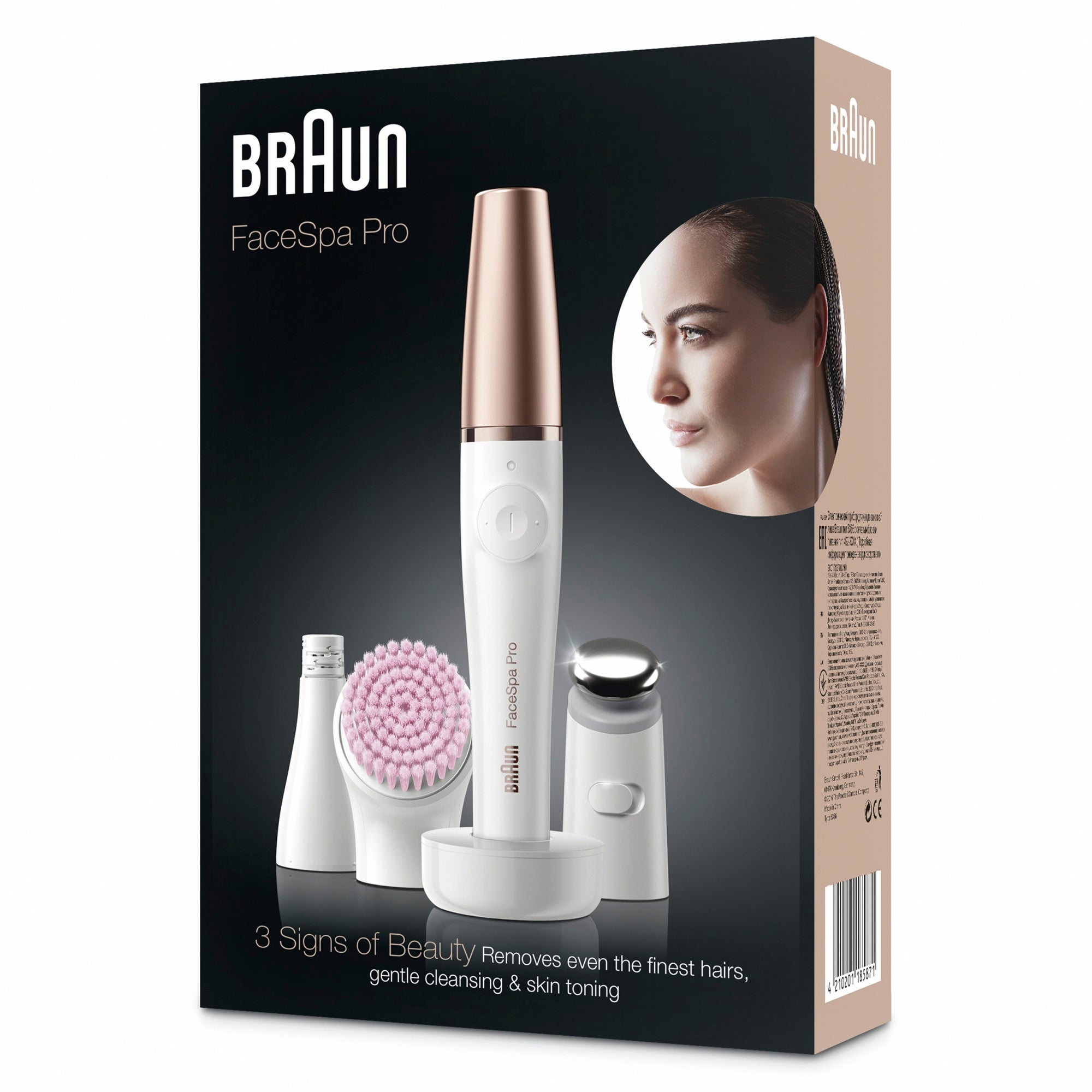 Braun FaceSpa Pro SE912 ist das weltweit erste All-in-One-Beauty Epiliergerät für das Gesicht. Entfernen Sie Gesichtshärchen sanft an der Wurzel mit dem Epilieraufsatz für langanhaltend glatte Haut. Die sanfte Reinigungsbürste entfernt Make-up, während der MicroVibrations-Kopf zusammen mit Ihrer Lotion oder Creme für eine straffere Haut sorgt. Der FaceSpa Pro SE912 verfügt über 10 Mikroöffnungen, um auch die feinsten Härchen zu erfassen. Dank der Wet & Dry-Funktion können Sie das Gerät 90 Minuten kabellos unter Wasser anwenden. Das Gerät wurde dermatologisch getestet und von der Skin Health Alliance akkreditiert. Im Lieferumfang enthalten: 1x FaceSpa Pro 1x Sensitiv-Gesichtsreinigungsbürste 1x Aufsatz zur Hautstraffung 1x Halterung 1x Aufbewahrungstasche 1x Ladegerät