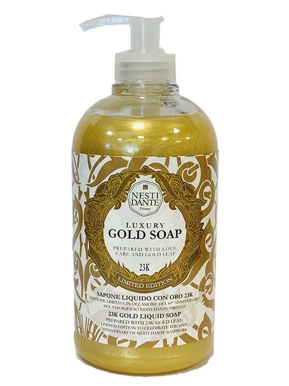 NESTI DANTE feiert sechs Jahrzehnte italienischer Seifenkunst mit einer edlen Komposition aus Pflege und Luxus - mit dieser Seife zum Jubiläum! Die mit feinen Blattgoldpartikeln veredelte Formel reinigt sanft und hinterlässt ein geschmeidig-weiches Hautgefühl. Der cremige Schaum und der elegante Duft machen das Händewaschen zu einem sinnlichen Erlebnis voller Raffinesse.