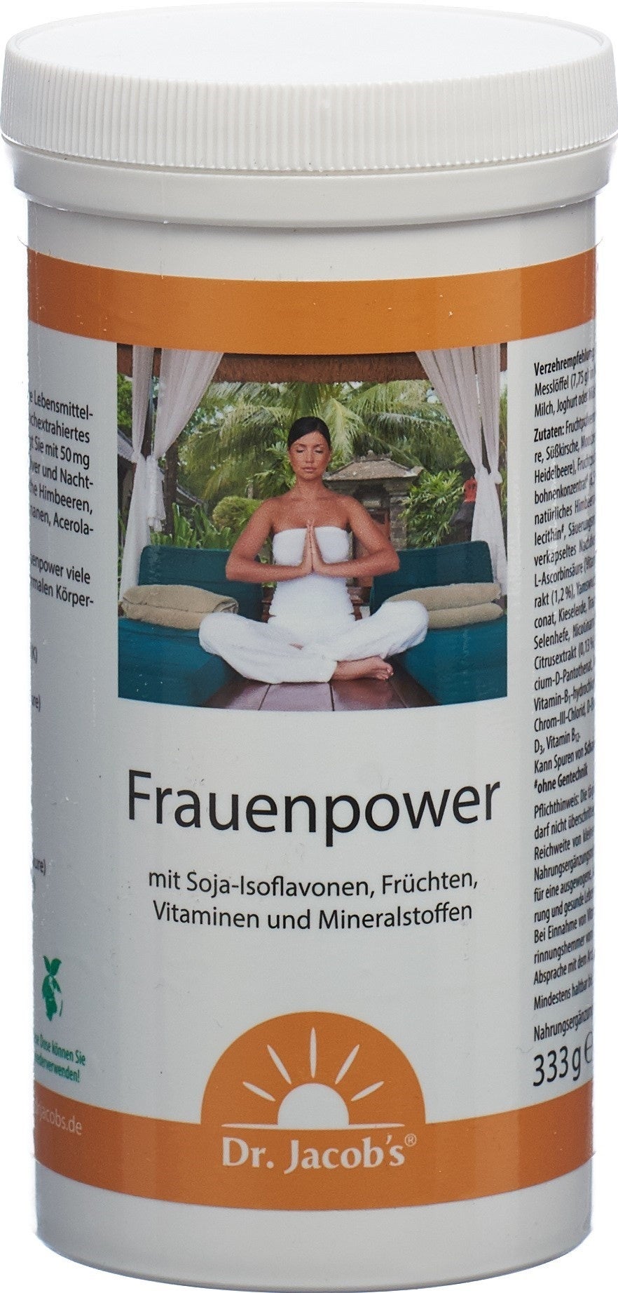 Köstliches Getränkepulver mit Früchten, Mikronährstoffen, organisch gebundenen Spurenelementen, sekundären Pflanzenstoffen und Soja-Isoflavon-Konzentrat (50 mg Phytoöstrogene je Portion).Die enthaltenen Nährstoffe tragen u.a. zu folgenden normalen Körperfunktionen bei:Energie-Stoffwechsel und Verringerung von Müdigkeit (Magnesium, Vitamin B2, Niacin, Pantothensäure)Immunsystem (Selen, Zink, Vitamin B6, Vitamin B12, C, D)Erhaltung normaler Haare und Haut (Biotin, Zink).