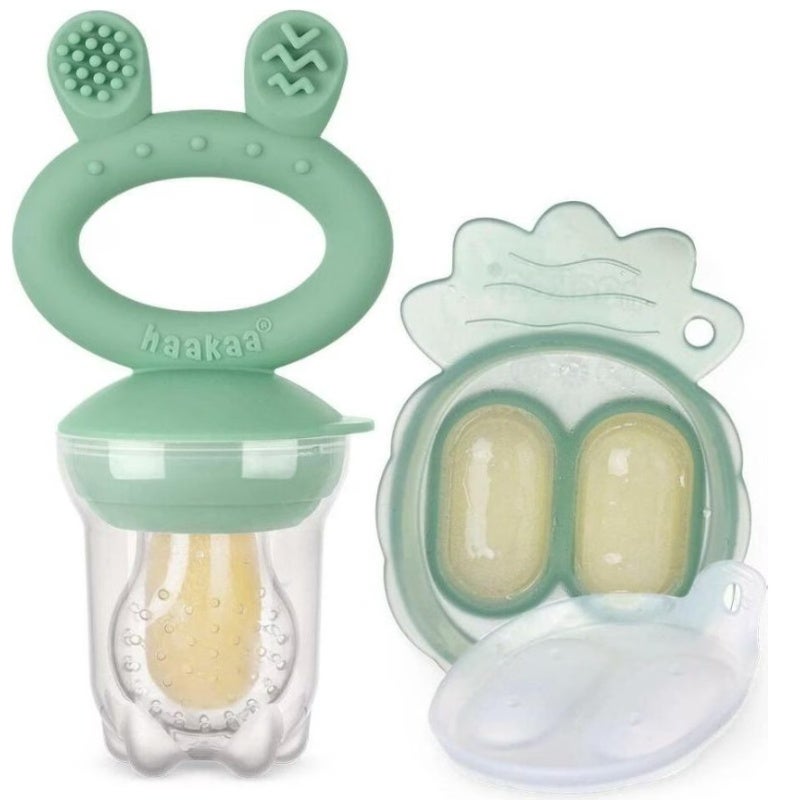 haakaa | Freeze-N-Feed Fruchtsauger und Eiswürfelform Set Mini erbsengrün