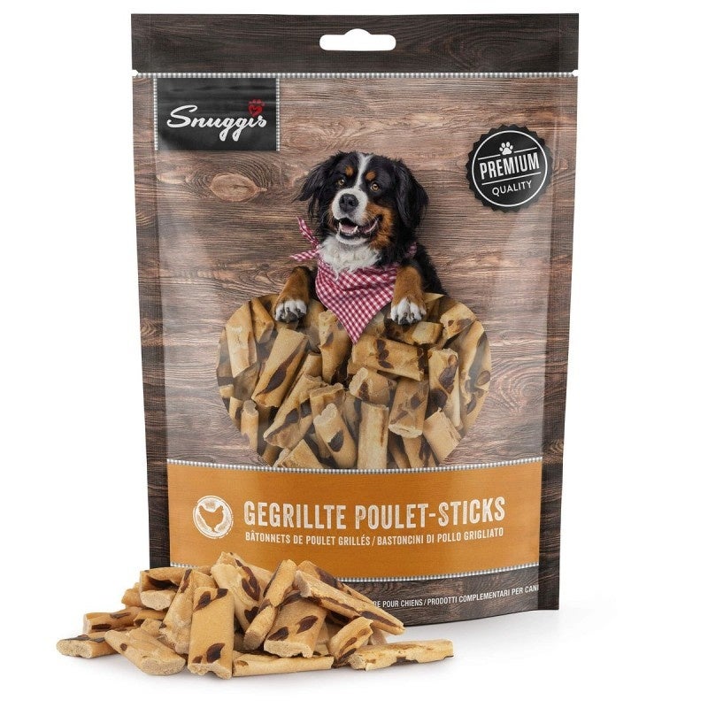 Die leckeren gegrillten Poulet-Sticks von Snuggis werden aus hochwertigem, schonend verarbeitetem Hühnerfleisch hergestellt und können ideal als Snack für zwischendurch oder zur Belohnung verwendet werden. Die leicht softe Konsistenz und das köstliche Grillaroma machen die Snacks für Hunde unwiderstehlich. Dank den mundgerechten Stückchen sind die gegrillten Poulet-Sticks für Hunde jeder Grösse und Rasse geeignet.