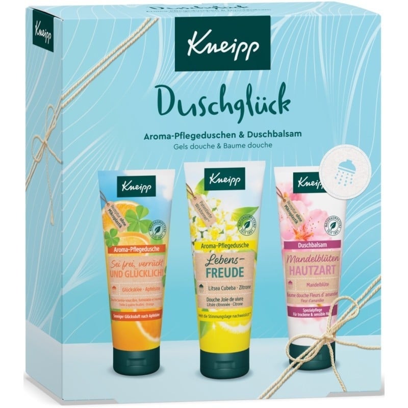 Das Kneipp® Duschglück Set mit einer Kombination aus Aroma-Pflegeduschen & Cremedusche mit pflanzlichen Pflegeformeln sorgt für ein besonderes Duscherlebnis. Rezepturen ohne Mikroplastik.