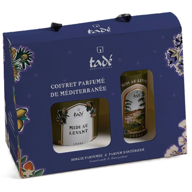 Dieses elegante Geschenkset vereint eine Kerze und ein Raumduftspray mit der verführerischen Duftnote "Midi au Levant“. Die Kerze besteht aus 100% pflanzlichem Wachs ohne Palmöl, verfügt über einen Docht aus 100% Baumwolle und bietet eine Brenndauer von 35–40 Stunden. Das Spray ist zu 97% natürlichen Ursprungs gefertigt und kommt in einer recycelbaren Glasflasche, die umweltbewussten Genuss ermöglicht.