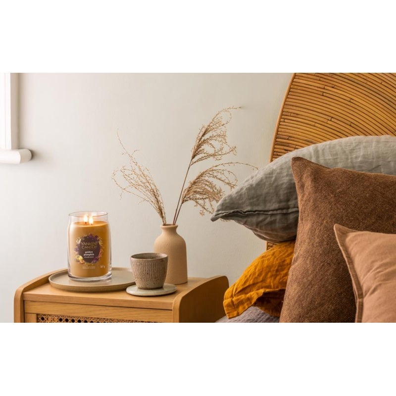 In der warmen Nachmittagssonne leuchten goldene Kürbisse in geheimnisvollem Glanz. Würziger Ingwer und aromatischer Zimt verschmelzen mit der süssen Verführung von Karamell und verleihen dem Duft eine einladende, herbstliche Tiefe. Ein strahlendes Zusammenspiel aus Wärme, Gewürzen und sanfter Süsse – wie ein goldenes Herbstlicht auf der Haut.