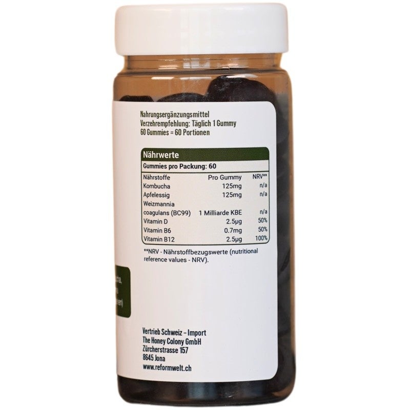 Täglich 1 Gummy, idealerweise mit ausreichend Flüssigkeit – zum Beispiel morgens oder zu den Mahlzeiten.