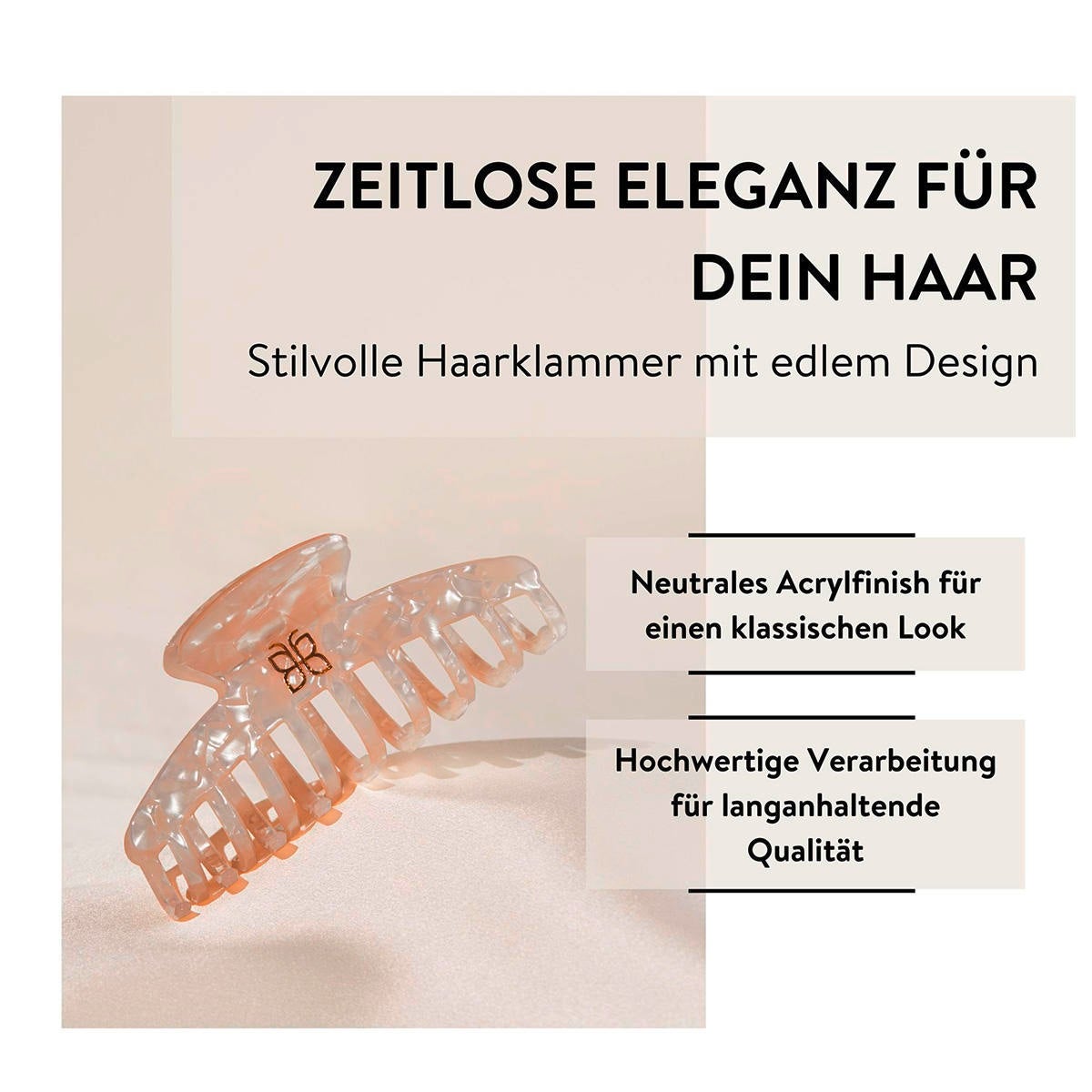 Mit ihrem zeitlosen Design und ihrer besonderen Eleganz überzeugt diese Haarklammer auf ganzer Linie. Das neutrale Acrylfinish und die hochwertige Verarbeitung unterstreichen ihre Qualität. Durch das leichte Material gewährleistet sie hohen Tragekomfort und ermöglicht im Handumdrehen einfache Hochsteckfrisuren.