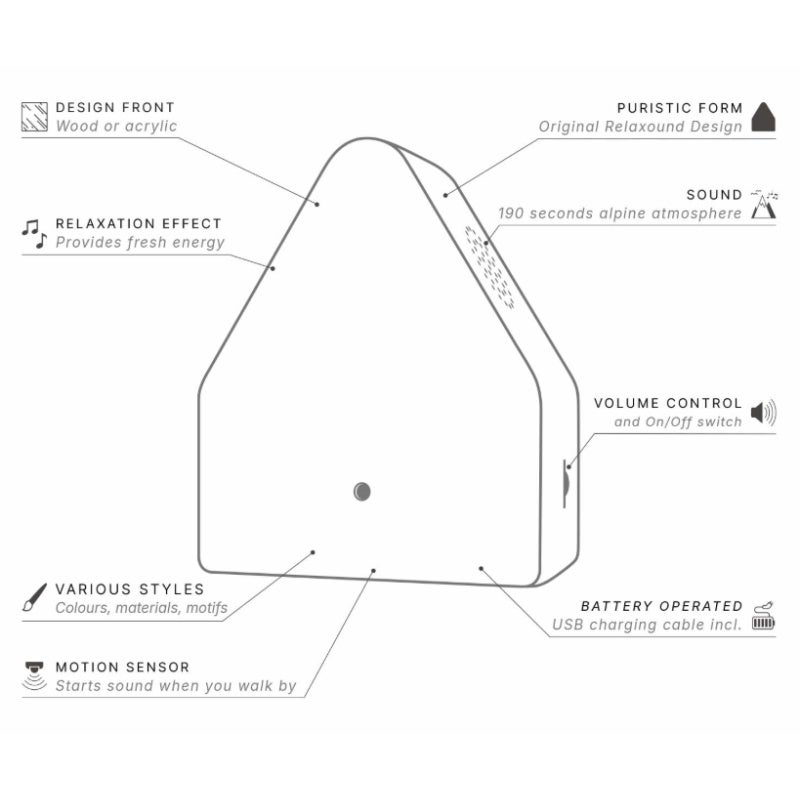 Zwei seitliche Lautsprecher sorgen für authentischen Bergpanorama-Sound: Ein Lautsprecher spielt die Bergatmosphäre, der andere setzt alpine Akzente. Die Heidibox klingt so klar, als wärst Du da. Die Klangkulisse aktivierst Du im Vorbeigehen per Bewegungssensor. Dank starkem Akku kannst Du die Alpen überall genießen: zu Hause, im Büro, im Garten, wann immer Du willst.