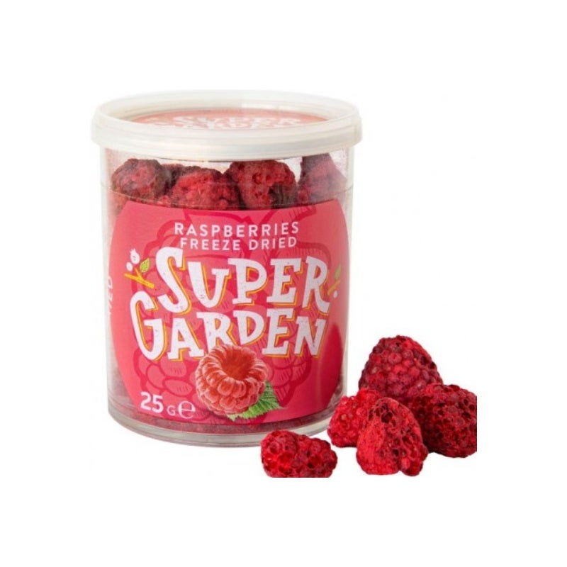 Die Knusprigkeit und Brüchigkeit der gefriergetrockneten Himbeeren passt zu jedem Getränk, das Sie wählen.