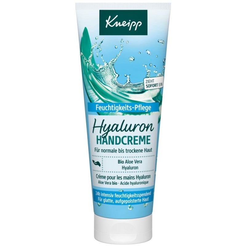 Die Kneipp® Hyaluron Handcreme mit Hydro Boost Komplex aus Hyaluronsäure, wertvollem Bio Aloe Vera Extrakt und hautberuhigendem Panthenol spendet 24h intensive Feuchtigkeit, verbessert sichtbar die Hautstruktur und reduziert Fältchen. Die reichhaltige Formel mit tiefenwirksamen Pflanzen-Pflegeölen und Squalan pflegt intensiv beanspruchte und trockene Hände und sorgt für glatte, geschmeidige Haut. Mit frisch-pflegendem Duft.