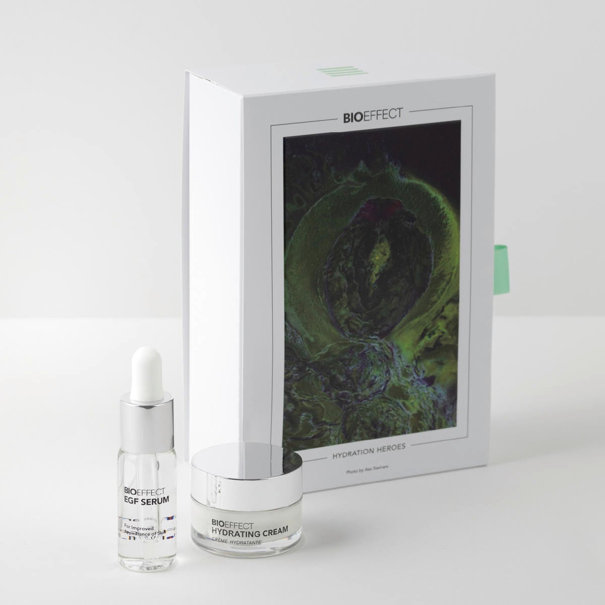 In diesem Jahr bietet BIOEFFECT die Möglichkeit, sich selbst oder einem geliebten Menschen das preisgekrönte EGF Serum zu schenken, das international als Bestseller gefeiert wird. Neben einer 15 ml Größe des EGF Serums enthält das Set zusätzlich eine 15 ml Reisegröße der beliebten Hydrating Cream, um die EGF-Pflegeroutine zu vervollständigen. Das EGF Serum ist eine innovative Formel mit 7 reinen Inhaltsstoffen, die hilft, Zeichen der Hautalterung entgegenzuwirken. BIOEFEFCT EGF unterstützt die hauteigene Kollagenproduktion, um die Haut glatt, straff und gesund zu halten. Abgerundet wird diese Pflegeroutine mit der Hydrating Cream. Eine erfrischende Feuchtigkeitscreme mit isländischem Wasser, Hyaluronsäure und Vitamin E, die die Haut intensiv mit Feuchtigkeit versorgt und ein weiches, geschmeidiges Finish hinterlässt. Zusammen sorgen beide Produkte für eine revitalisierte, gut hydrierte und sichtbar gesündere Haut.