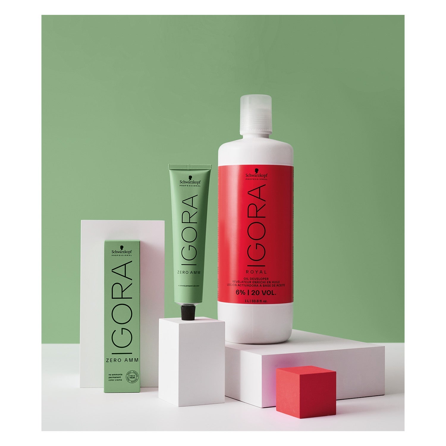 100% frei von Ammoniak, IGORA ZERO AMM ist eine permanente Farbcreme, die für alle Farbtechniken ohne Kompromisse verwendet werden kann. IGORA ZERO AMM bietet präzise und natürliche Farbergebnisse, eine Weissabdeckung von bis zu 100%, eine herausragende Farbintensität und Leistung, auf die Du Dich verlassen kannst. Die ammoniakfreie Formulierung besteht aus der Phytolipid-Technologie, speziellen Pigmentkombinationen und einer Mischung aus fein verarbeiteten Ölen, die die Schuppenschicht versiegeln und für langanhaltende, natürliche und farbechte Farbergebnisse sorgen, ohne Ammoniakgeruch.