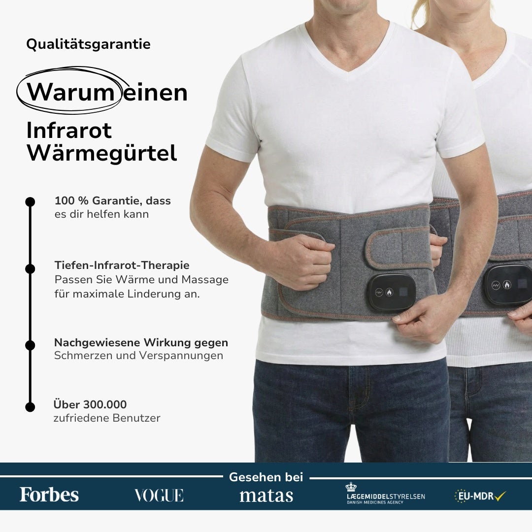 Die Infrarotwärme dringt tiefer in das Gewebe ein und trägt zur Entspannung der Muskeln und zu mehr Komfort in Bereichen mit Verspannungen und Schmerzen bei.