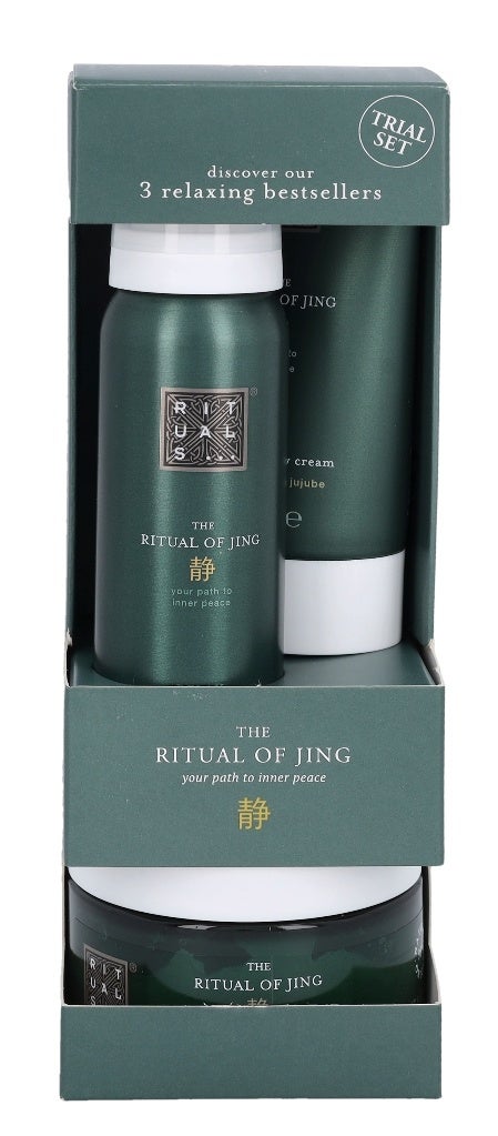 Das Set von The Ritual of Jing ist perfekt zum Kennenlernen von Rituals. Es ist das ideale Geschenk für Freunde oder Familie und beinhaltet drei Entspannungs-Bestseller. Alle Produkte sind angereichert mit den beruhigenden Inhaltsstoffen Lotus und Jujube. Das zu 92 % aus natürlichen Inhaltsstoffen bestehende Salzpeeling enthält stressminderndes Magnesium sowie eine reichhaltige Kombination von Ölen, um abgestorbene Hautschüppchen gründlich zu entfernen und die Haut zu pflegen.