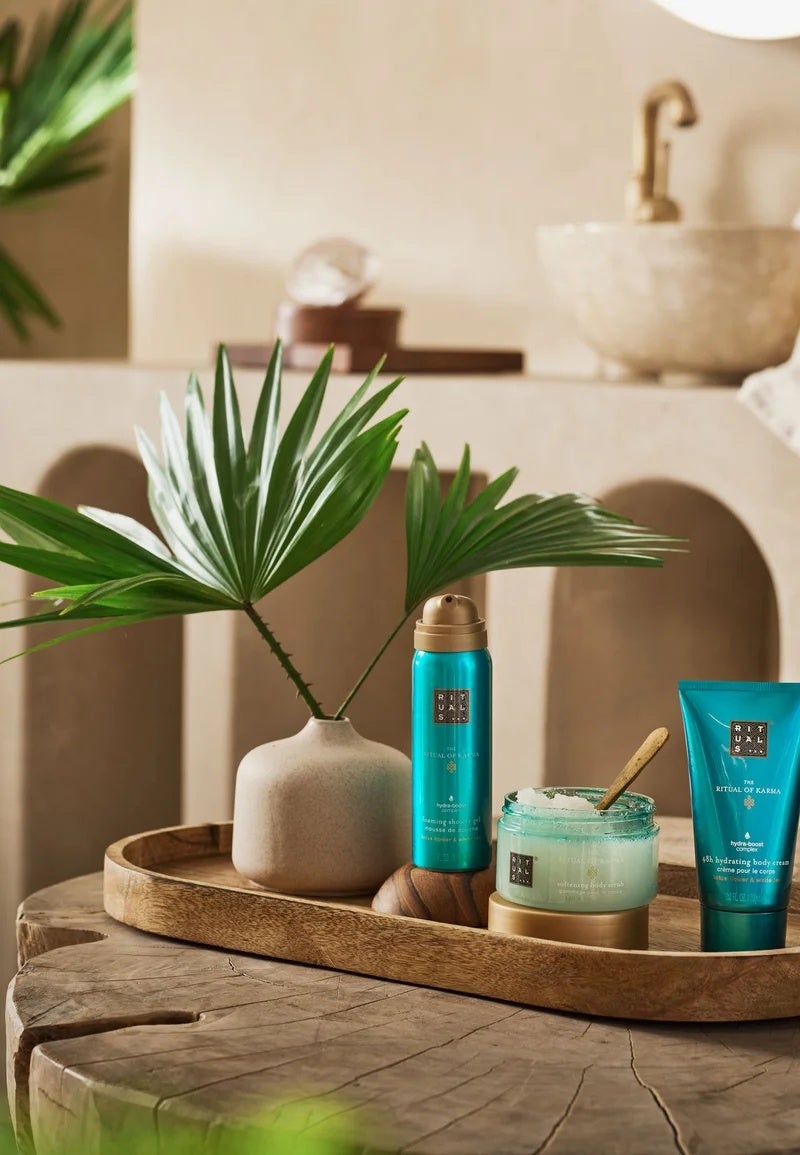Die Ritual of Karma-Box ist der beste Weg, Rituals zu entdecken und ein ideales Geschenk für Sie oder jeden, den Sie lieben, da sie drei der meistverkauften Produkte der Kollektion vereint: ein Schaumduschgel und eine 48-Stunden-Körpercreme von 92 % natürlichen Ursprungs und ein weichmachendes Körperpeeling zu 94 % natürlichen Ursprungs.