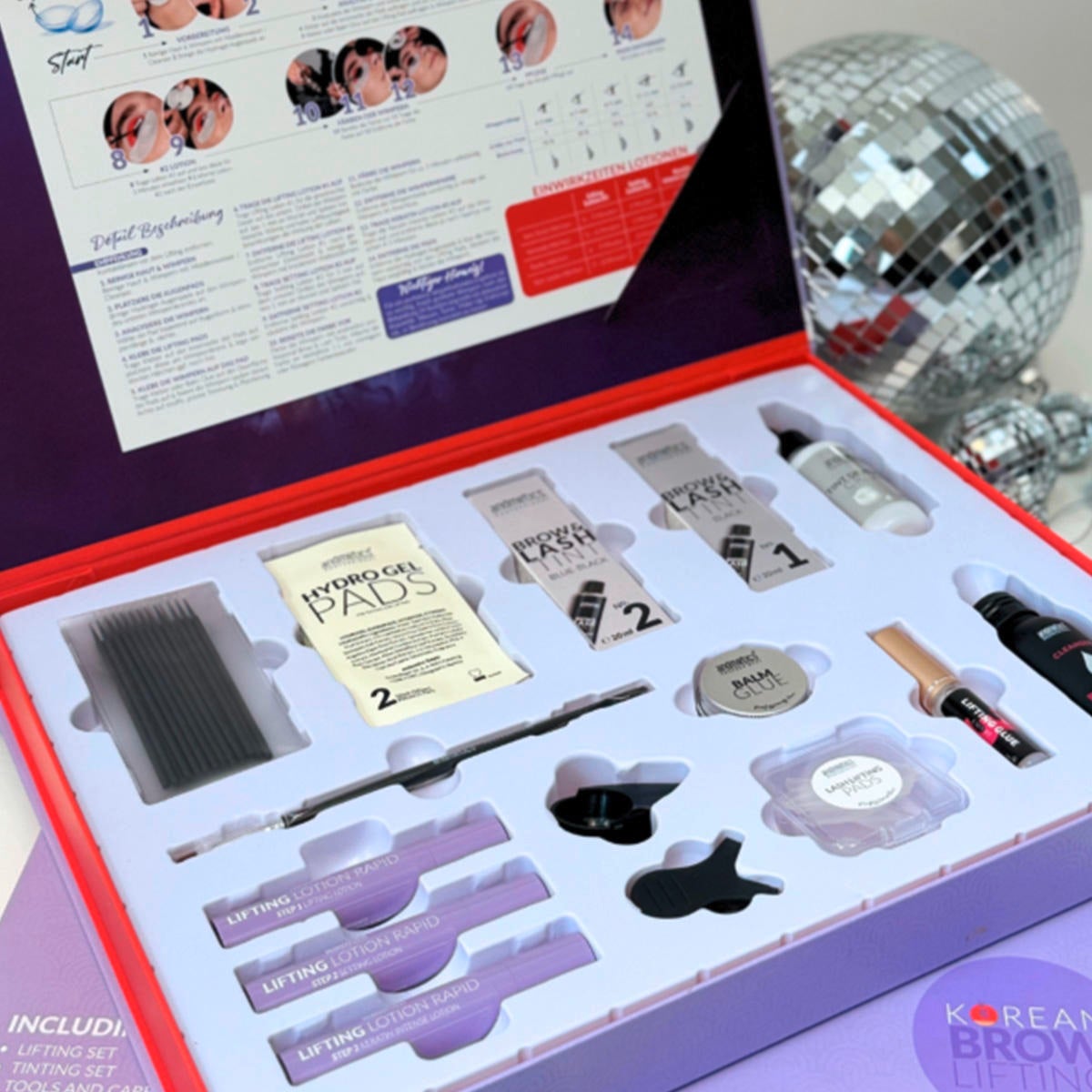 Perfektes Wimpernlifting mit der Korean Lash Lifting Collection Box. Entdecke die innovative Korean Lash Lifting Collection Box – die ideale Lösung für ein professionelles Wimpernlifting. Die Box wurde in enger Zusammenarbeit mit korianischen Beauty-Experten speziell formuliert & enthält drei hochwirksame Lash-Lifting-Lotionen, welche die Wimpern schnell, einfach und zuverlässig transformieren & für voluminöse Definition sorgen. Mit Produkten in Originalgröße & vielen praktischen Tools bietet dieses Set alles, was Profis und Anfänger benötigen um sofort loszulegen. Die Aftercare Keratin-Intense-Lotion versorgt die Wimpernhärchen tiefenwirksam – für ein Lifting-Erlebnis & -Ergebnis der Extraklasse. Die Box umfasst zudem Brow- & Lash-Tints in zwei Nuancen, ideal für eine natürliche und langanhaltende Färbung der Wimpern. Dein umfassendes Augenbrauenservice und Wimpernlifting in einem Set! Korean Lash Lifting Full Collection Box beinhaltet:
