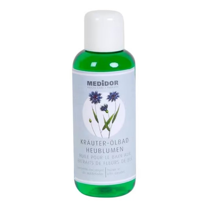 Das wohltuende Bad mit dem krautig duftenden Heublumenextrakt wirkt anregend und steigert das Wohlbefinden.