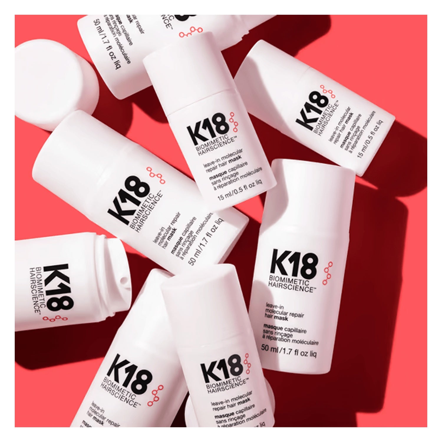 K18™ Biomimetic Hair Science! 10 Jahre biometrische Forschung und ein bahnbrechendes Peptid später - patentiertes K18Peptide™ - nach dem Studium des gesamten Genoms der menschlichen Keratinproteine. Nach einem Jahrzehnt der Forschung entdeckte Biomimetic Hair Science eine einzigartige Sequenz, um die Wissenschaft zu entschlüsseln und chemisch geschädigtes Haar wieder in seinen jugendlichen, gesunden Zustand zu versetzen. Die K18™ Technologie ist keine vorübergehende Lösung! Es ist die erste Technologie, die Biomimetik nutzt, um unterbrochene Keratinketten wieder zu verbinden, die durch chemische oder mechanische Schäden entstanden sind. Das Ergebnis ist weiches, glattes, repariertes, kräftiges Haar mit luxuriöser Sprungkraft und Glanz. Je stärker das Haar geschädigt ist - desto dramatischer sind die Ergebnisse! Es ist klinisch bewiesen, dass es in 4 Minuten wirkt und wird von Stylisten auf der ganzen Welt unterstützt! Die K18™ Professional Molecular Hair Repair Mask dringt in nur 4 Minuten tief in den Haarkortex ein und bringt das Haar in seinen natürlichen, jugendlichen Zustand zurück - sie beruhigt die Haarkutikula und gleicht die Porosität des Haares aus.