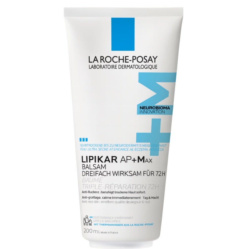 Der La Roche-Posay Lipikar Balsam AP+Max ist eine hochwirksame Körperpflege, die sofort beruhigt, intensiv Feuchtigkeit spendet und das Hautmikrobiom ins Gleichgewicht bringt. Speziell formuliert für sehr trockene, empfindliche und zu Neurodermitis neigende Haut, lindert der Balsam sofort Juckreiz und reduziert den Drang zu kratzen – für mehr Komfort im Alltag. Die besonders reichhaltige, dermatologisch getestete Formel stärkt die Hautbarriere, reduziert die Häufigkeit von Schüben und bietet einen Anti-Rückfall-Effekt, der die Haut nachhaltig schützt. Mit einer Wirkdauer von bis zu 72 Stunden Feuchtigkeitsversorgung sorgt der Balsam für anhaltende Geschmeidigkeit und Erleichterung. Geeignet für Neugeborene, Kinder und Erwachsene, auch bei sehr empfindlicher Haut.