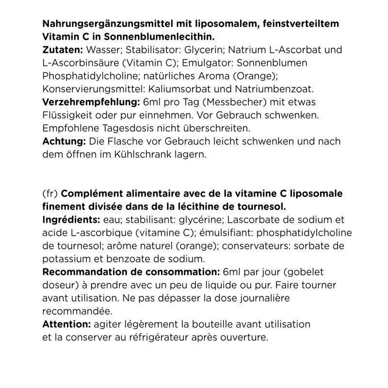 Durch einen speziellen Herstellungsprozess entstehen mikroskopisch kleine Liposomen. Diese umschließen das Vitamin C und schützen es beim Durchgang durch den Verdauungstrakt. Auf diese Weise kann der Aktivstoff effizient in den Blutkreislauf gelangen und dem Körper zur Verfügung gestellt werden.