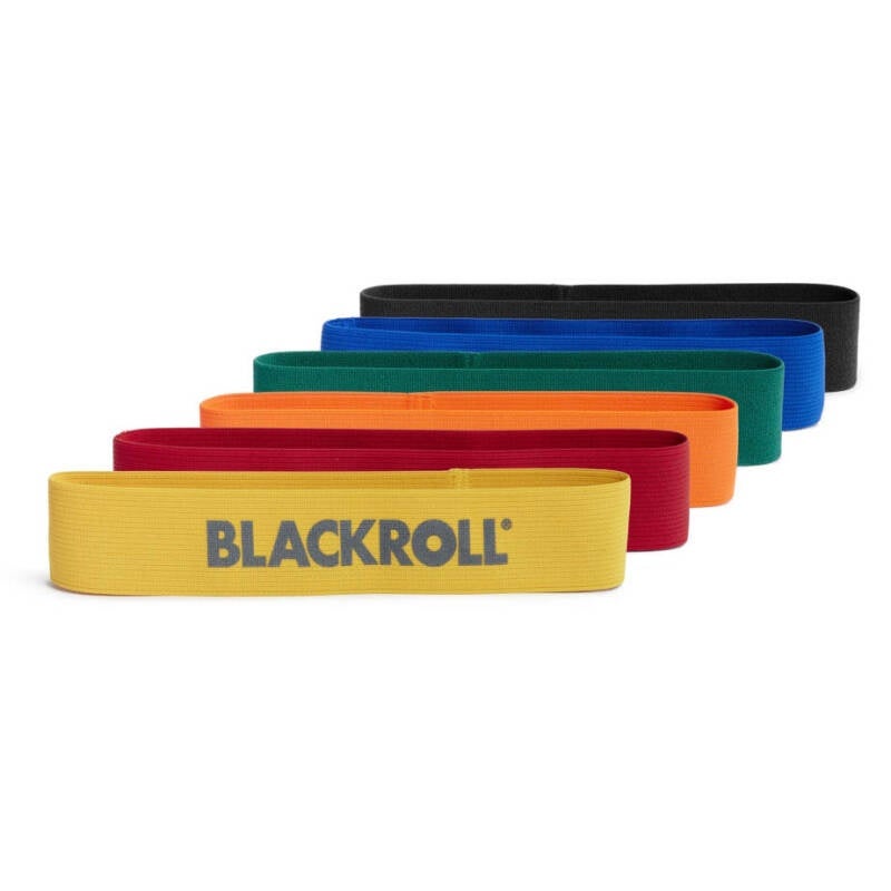 - NEU: Die BLACKROLL LOOP BAND Fitnessbänder gibt es jetzt in 6 verschiedenen Widerstandsstärken: extra leicht (gelb), leicht (orange), moderat (rot), mittel (grün), stark (blau) und extra stark (schwarz).