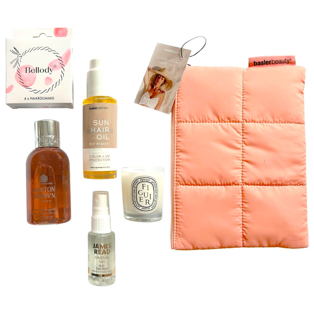MOLTON BROWN Heavenly Gingerlily Bath & Shower Gel: WATER/AQUA/EAU, SODIUM LAURETH SULFATE, COCAMIDOPROPYL BETAINE, FRAGRANCE/PARFUM, PROPYLENE GLYCOL, LAURETH-7 CITRATE, COCOGLUCOSIDE, GLYCERIN, CALOPHYLLUM INOPHYLLUM SEED OIL, BUTYLENE GLYCOL, BENZYL ALCOHOL, ETHYLHEXYL SALICYLATE, CITRIC ACID, POLYQUATERNIUM-7, TETRASODIUM GLUTAMATE DIACETATE, SODIUM HYDROXIDE, CAPRYLIC/CAPRIC TRIGLYCERIDE, LAURYL ALCOHOL, BUTYL METHOXYDIBENZOYLMETHANE, DIETHYLHEXYL SYRINGYLIDENEMALONATE, MYRISTYL ALCOHOL, TOCOPHEROL, SODIUM PHYTATE, LONICERA CAPRIFOLIUM (HONEYSUCKLE) FLOWER EXTRACT, LONICERA JAPONICA (HONEYSUCKLE) FLOWER EXTRACT, PEG-150 PENTAERYTHRITYL TETRASTEARATE, PPG-2 HYDROXYETHYL COCAMIDE, SODIUM BENZOATE, SORBIC ACID, PHENOXYETHANOL, ALPHA-ISOMETHYL IONONE, CITRONELLOL, EUGENOL, GERANIOL, HEXYL CINNAMAL, HYDROXYCITRONELLAL, LINALOOL, BLUE 1/CI 42090, RED 33/CI 17200, RED 4/CI 14700. BASLER Sun Hair Oil: CYCLOPENTASILOXANE, CYCLOHEXASILOXANE, DIMETHICONOL, ARGANIA SPINOSA KERNEL OIL, PARFUM, MACADAMIA INTEGRIFOLIA SEED OIL, ETHYLHEXYL METHOXYCINNAMATE, GLYCINE SOJA OIL, PHENOXYETHANOL, BENZYL SALICYLATE, ETHYLHEXYLGLYCERIN, LINALOOL, ALPHA-ISOMETHYL IONONE, BETA-CAROTENE, DAUCUS CAROTA SATIVA ROOT EXTRACT, LIMONENE, BHT, TOCOPHEROL. JAMES READ Gradual Tan H2O Tan Mist: AQUA/WATER/EAU, HAMAMELIS VIRGINIANA (WITCH HAZEL) WATER, DIHYDROXYACETONE, GLYCERIN, PEG-7 GLYCERYL COCOATE, POLYSORBATE 20, ROSA DAMASCENA (DAMASK ROSE) FLOWER OIL, ALOE BARBADENSIS (ALOE VERA) LEAF JUICE, PHENOXYETHANOL, DMDM HYDANTOIN, ANTHEMIS NOBILIS (ROMAN CHAMOMILE) FLOWER EXTRACT, PARFUM (FRAGRANCE), ERYTHRULOSE, SODIUM HYDROXIDE, POTASSIUM SORBATE, CITRIC ACID, ETHYLHEXYLGLYCERIN, LINALOOL, COUMARIN, ALPHA-ISOMETHYL IONONE, BENZYL SALICYLATE, HEXYL CINNAMAL.