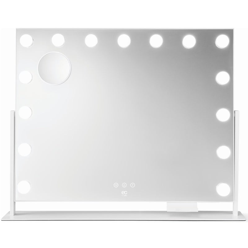Praktische Zusatzfunktionen machen den EC Star Spiegel besonders benutzerfreundlich: Über USB- und USB-C-Anschlüsse kannst du während des Schminkens Geräte aufladen, und die mitgelieferte Handyhalterung ermöglicht Tutorials oder Videoanrufe direkt am Spiegel. Mit seinem modernen, von Visagisten inspirierten Design passt der Spiegel stilvoll auf jeden Schminktisch oder ins Badezimmer und sorgt dafür, dass dein Make-up stets im besten Licht gelingt, ohne Schatten oder ungleichmässige Farbergebnisse.