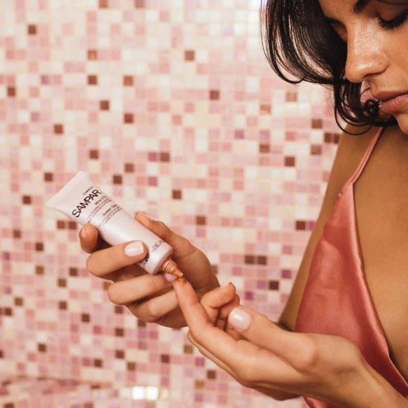 Golden Glow von SAMPAR ist eine innovative 2-in-1-Terrakotta-Creme, die Ihrem Teint sofort einen warmen, strahlenden Schimmer verleiht. Die pflegende Formulierung mit mineralischen Pigmenten sorgt für ein natürliches, sonnengeküsstes Finish und lässt die Haut frisch und lebendig wirken. Gleichzeitig wird die Haut intensiv mit Feuchtigkeit versorgt – bis zu 24 Stunden lang – und erhält ihre geschmeidige Struktur zurück.