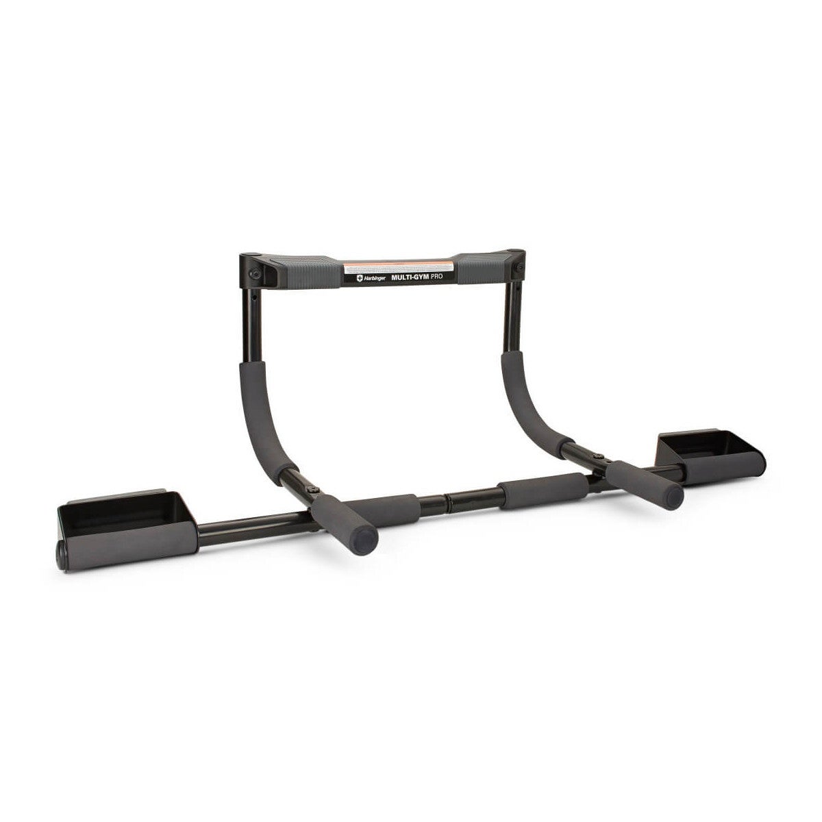 Das Harbinger Multi-Gym Pro ist ein tragbares Fitness-Studio-System, das sowohl als Klimmzugstangen als auch für Sit-Ups, Liegestütze und Dips verwendet werden kann. Das Multi-Gym Pro zielt auf Arme, Brust-, Rumpf- und Rückenmuskeln mit Workouts ab, die ein maximales Muskelengagement gewährleisten. Es verfügt über gepolsterte Griffe, die 4 Griffpositionen ermöglichen, um normalen Griff, engen Griff, breiten Griff und Hammergriff-Klimmzüge auszuführen. Die Gewichtskapazität von 135 Kg macht die Verwendung mit einer Gewichtsweste sicher. Der Multi-Gym Pro wird auf dem Boden platziert und kann für Sit-Ups, Liegestütze und Dips verwendet werden. Gepolsterte Griffe bieten Komfort und sorgen für die richtige Form. Der patentierte Türrahmenschutz in einzigartig flachem Design mit dicken Schaumstoffpolstern schützt zudem den Türrahmen. Mit dem Multi-Gym Pro ist Sport/Krafttraining zu Hause einfach zu realisieren, ohne dass dafür Löcher gebohrt werden müssen. Zusammengebaute Abmessungen: 38.1 x 96.5 x 35.5 cm; Gewicht 2.81kg